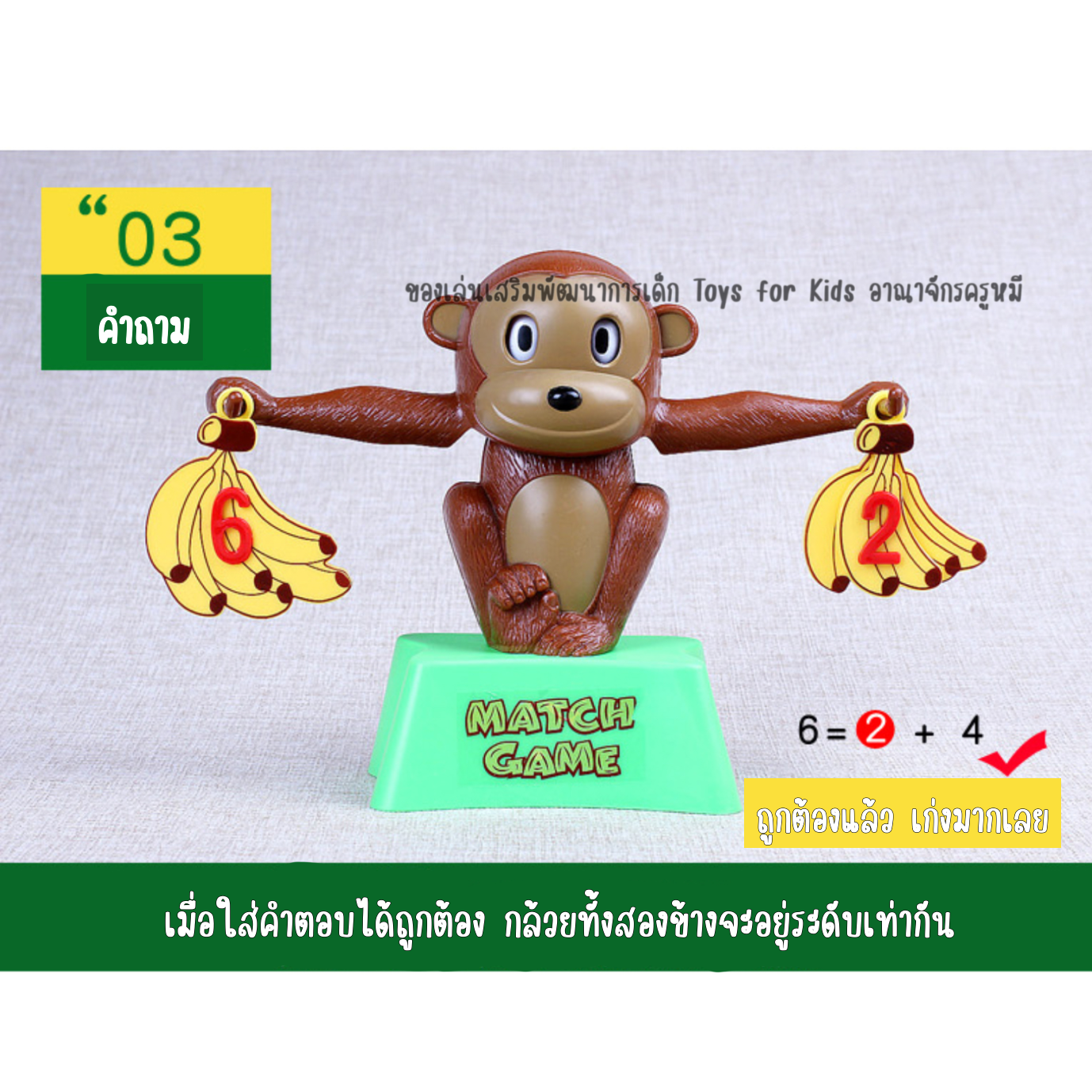 ของเล่นเด็ก เกมลิงน้อยบวกเลข เสริมพัฒนาการ การบวก - ลบเลข, จำนวนมากกว่า น้อยกว่า เสริมทักษะการคิดให้สามารถหาคำตอบที่หลากหลายได้ด้วยตนเอง